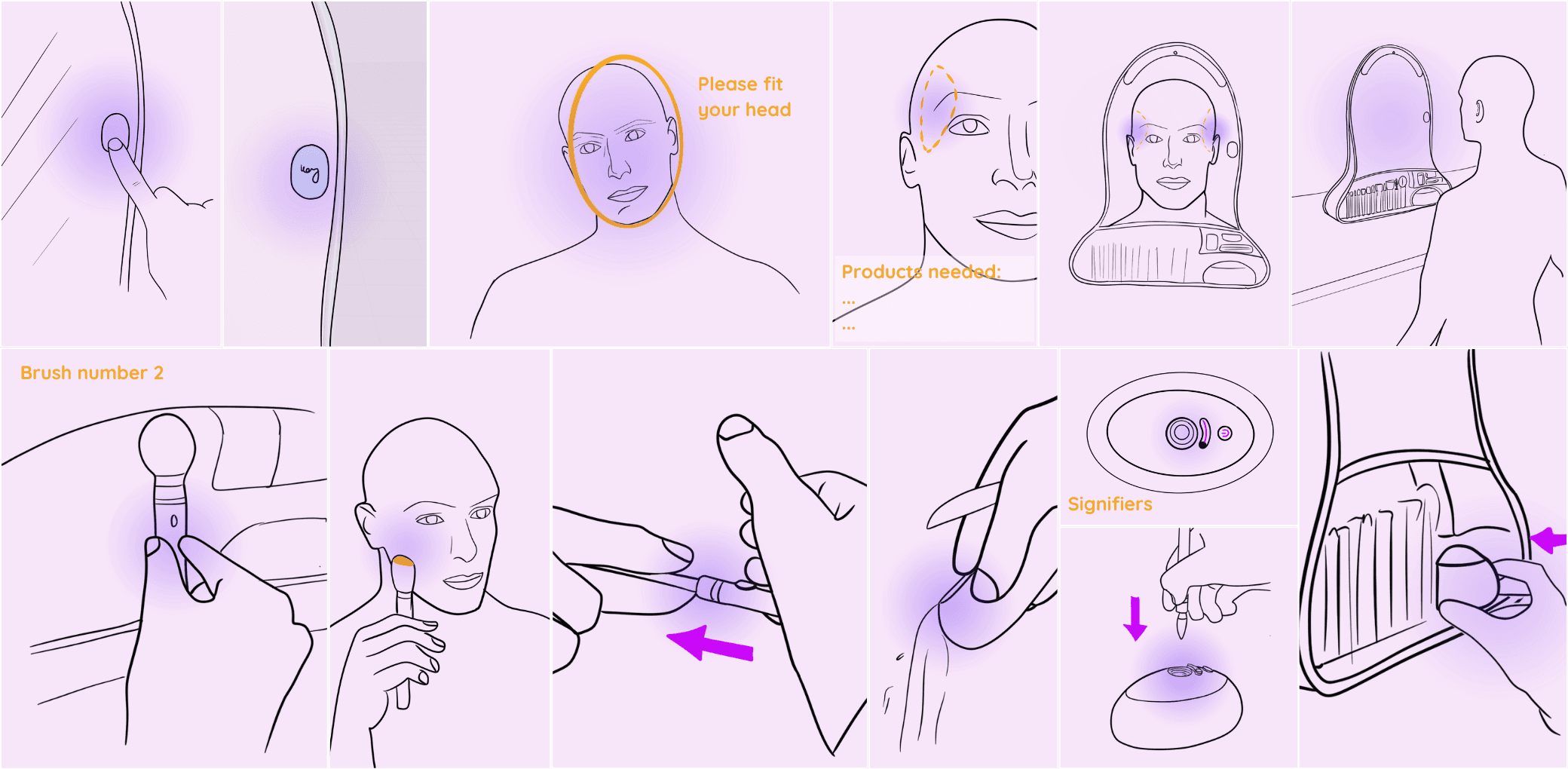 Introducing Arora, a makeup kit inspired by semiotic relations and expressive narratives, blending the theatrical world of Cirque du Soleil with the conceptual essence of Alphaville. Designed specifically for Cirque's backstage experience, it caters to performers known for their bold show makeup. The kit features a mirror-integrated display, providing step-by-step tutorials that simplify the self-application process and ensure consistency before every performance.