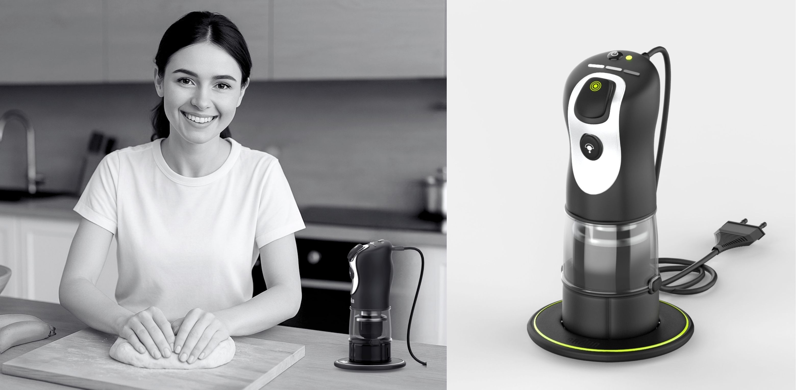 The iconic form language of Braun’s hand blender informed our choices in material, silhouette, and color, helping anchor the design in a familiar yet refined aesthetic.